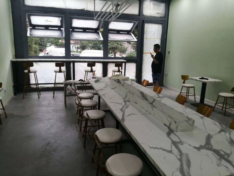 我廠承接的西安鮮螺螺螄粉餐館定制餐桌椅工程正式交工,家具安裝完畢后,大理石臺面餐桌看上去非常的上檔次,客戶對于我廠生產(chǎn)的餐桌椅給予了高度贊揚。