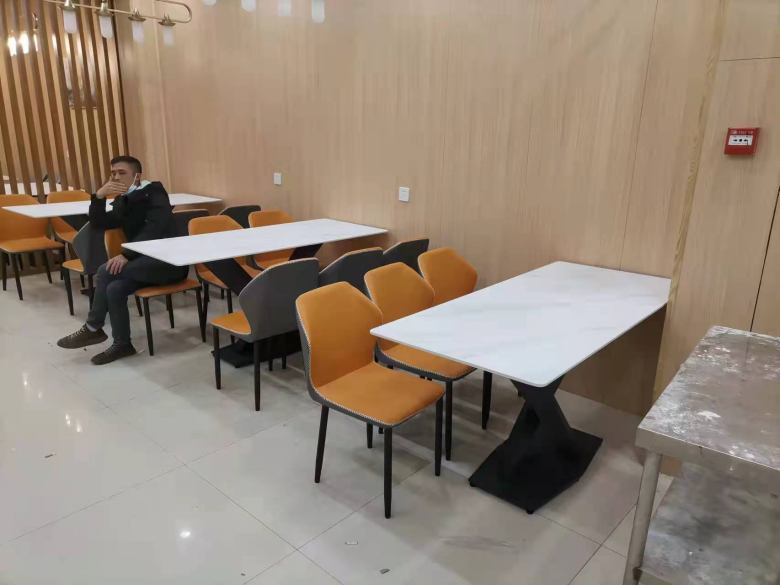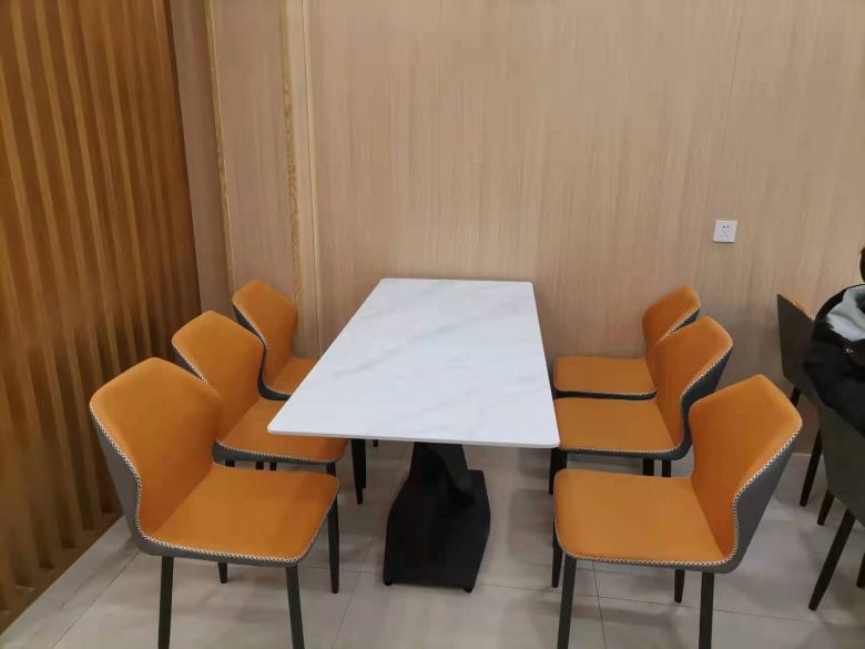 當(dāng)客戶踏入展廳后不久,便中意上了一款巖板餐桌和輕奢風(fēng)格的餐椅,兩者搭配在一起既具有現(xiàn)代簡約感又精致時尚,更突出的優(yōu)點便是巖板桌面不吸油污,表明的油漬用濕抹布輕輕擦拭就能去除,很好打理。