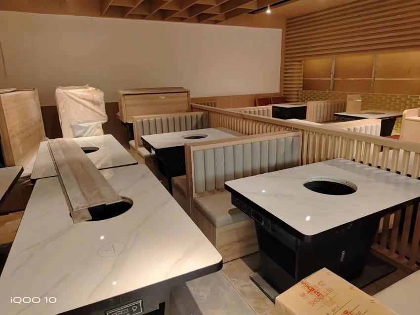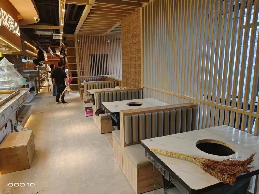 西安漢熙山料理級(jí)自助烤肉餐廳餐桌椅及沙發(fā)卡座交貨完成
