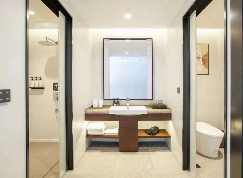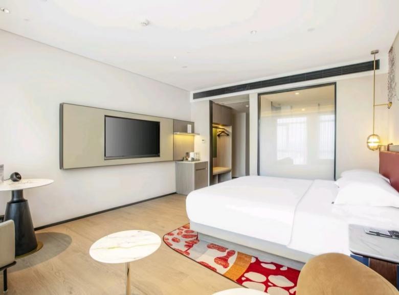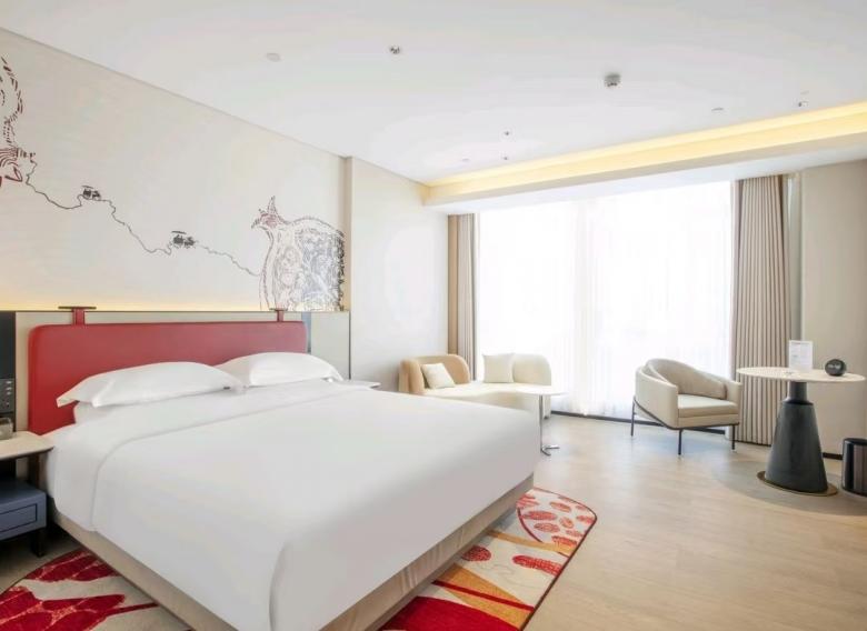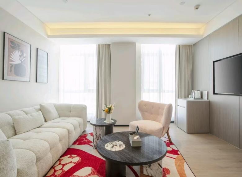 平?jīng)鰵g閱酒店環(huán)保性好,床、柜等選用E0級板式家具,移動家具則由我廠負(fù)責(zé)搭配設(shè)計,與客房整體風(fēng)格協(xié)調(diào),并且更好的提升了室內(nèi)空間的氛圍感和時尚感。