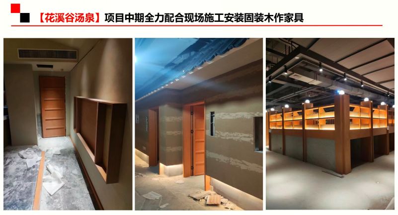在和花溪谷湯泉投資方達(dá)成合作后,我廠隨即安排具有豐富經(jīng)驗的項目經(jīng)理負(fù)主責(zé),另配備了三名家具深化設(shè)計師進(jìn)行工作輔助。疫情期間,上下班工地家里來回跑也不方便,索性他們干脆就吃住在工地,雖然睡在工地環(huán)境艱苦了,但工作起來更加高效。